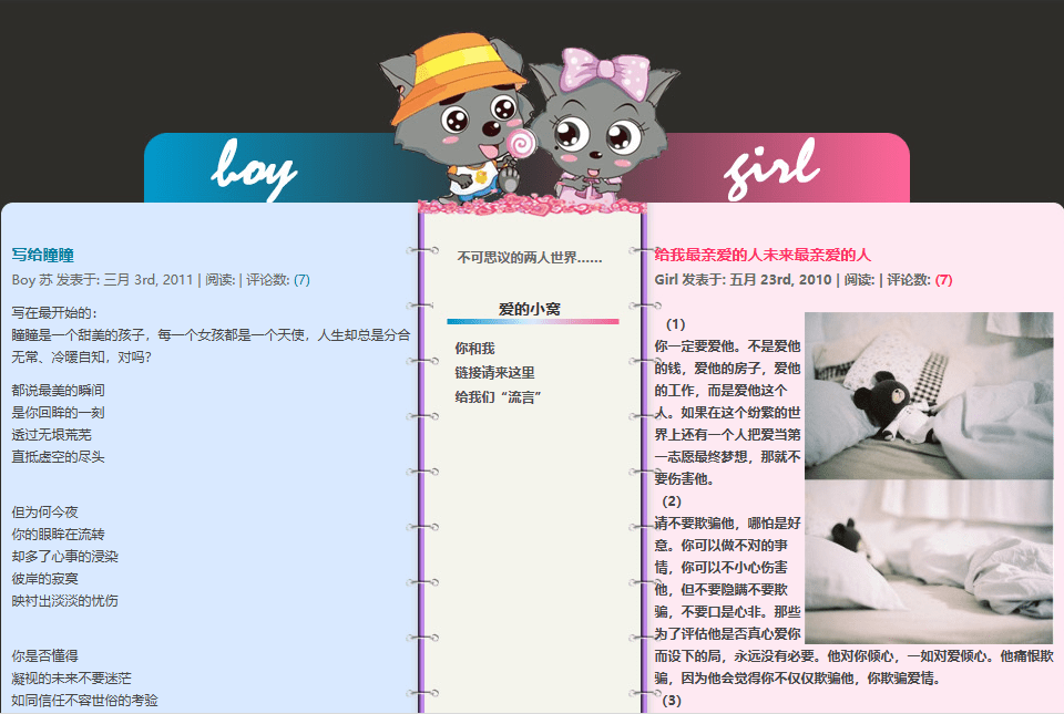 05年,这应该是我第一次接触和应用blog系统,中文博客程序王者— zblog,至今还活跃在互联网之上,虽然现在的王冠被 wordpress 摘走了,但这个博客主要是网站公告+生活日志内容,用的还是blog.bksy.org二级域名。时间一晃到了到了07年,终于我也正式开了个人博客,与不可思议网彻底剥离。这是和前女友一起使用的双人博客,初期仍然用的zblog,后期转为wordpress,详情之前写在了 重新开博11周年记 这篇文章里。选了一个真心漂亮的主题(双陈记),分手后伤心欲绝无心打理就关闭了博客系统。幸好互联网有记忆,通过时光机才没有把这段回忆彻底凐灭在渐行渐远的时光里。