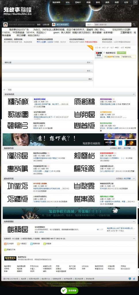 花开两朵,各表一枝。除了互联网外,对于玄学我也一直有股特别的探索欲望,从上面讲述的不可思议网站就可以窥见一二。2011年时恰巧收了两枚非常棒的玉米(guigushi.cn和guigushi.com.cn),鬼故事的全拼域名,用com.cn域名做了个鬼故事网站,而cn域名同步搞了鬼故事论坛,如今也没时间打理关闭了。CN这个玉米一直保留在手里,还幻想着有朝一日东山再起。COM.CN出售了,目前购买者建了12星座的网站,偶尔还会去浏览浏览。