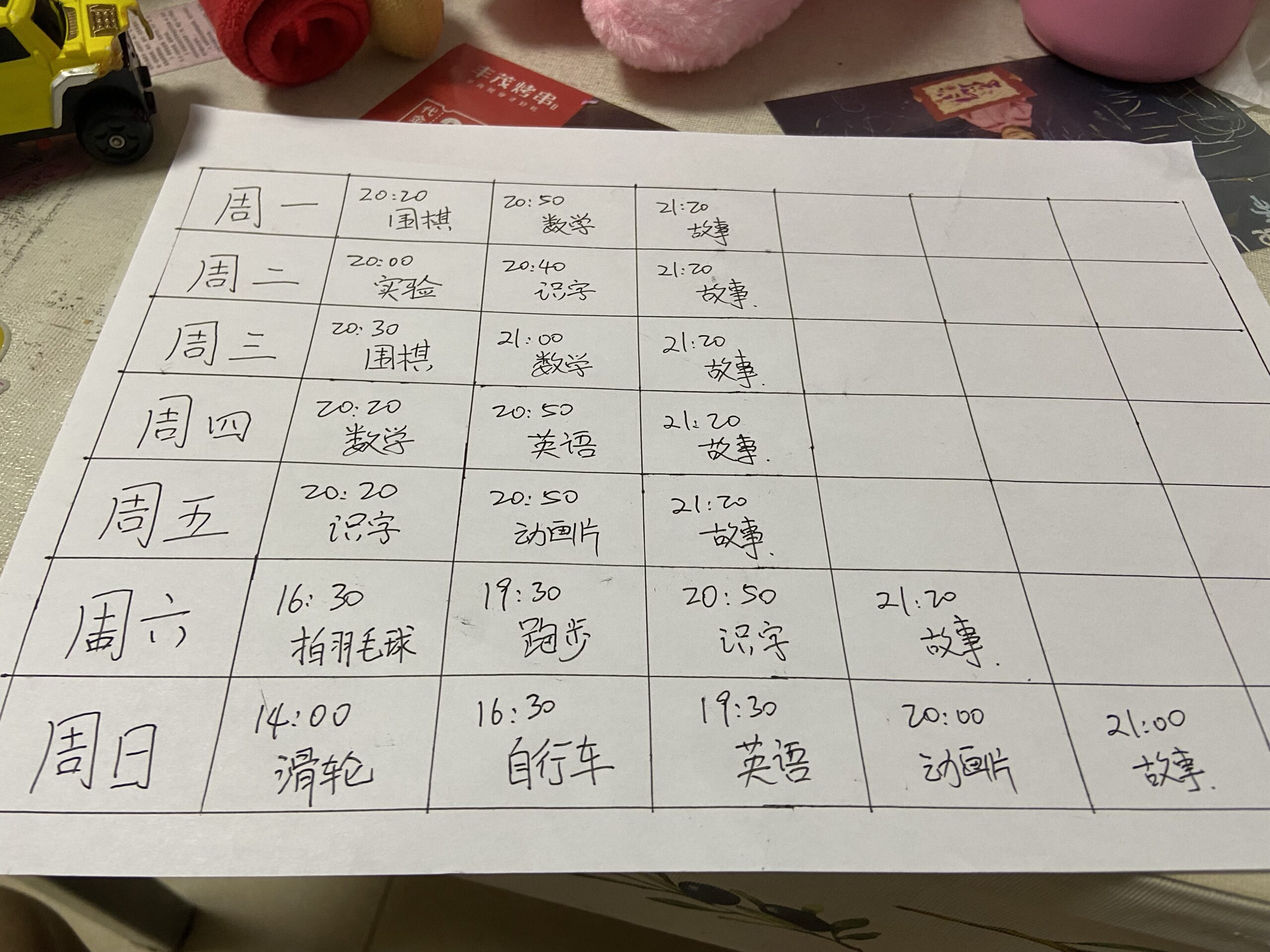 痛定思痛,亡羊补牢尚且不晚,吃完饭回家立刻画表做个作息表,以后每天可以参照表上的时间“培养”女儿。