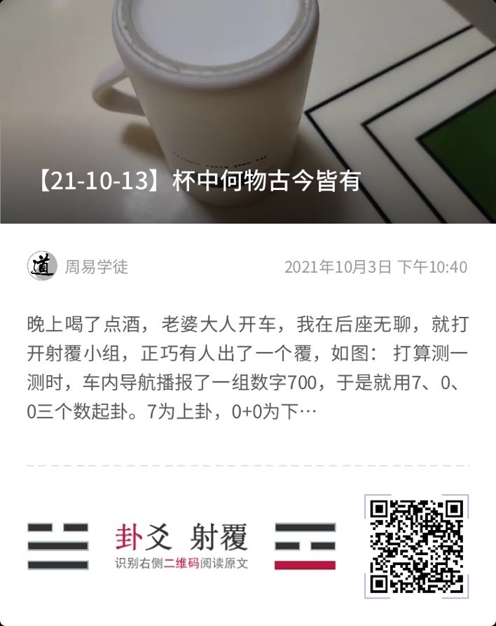 不过我想,与其干巴巴的推广,不如用今晚刚玩的一组射覆游戏,做个详细的解剖分析,让有兴趣的朋友了解下射覆的玩法和神秘。