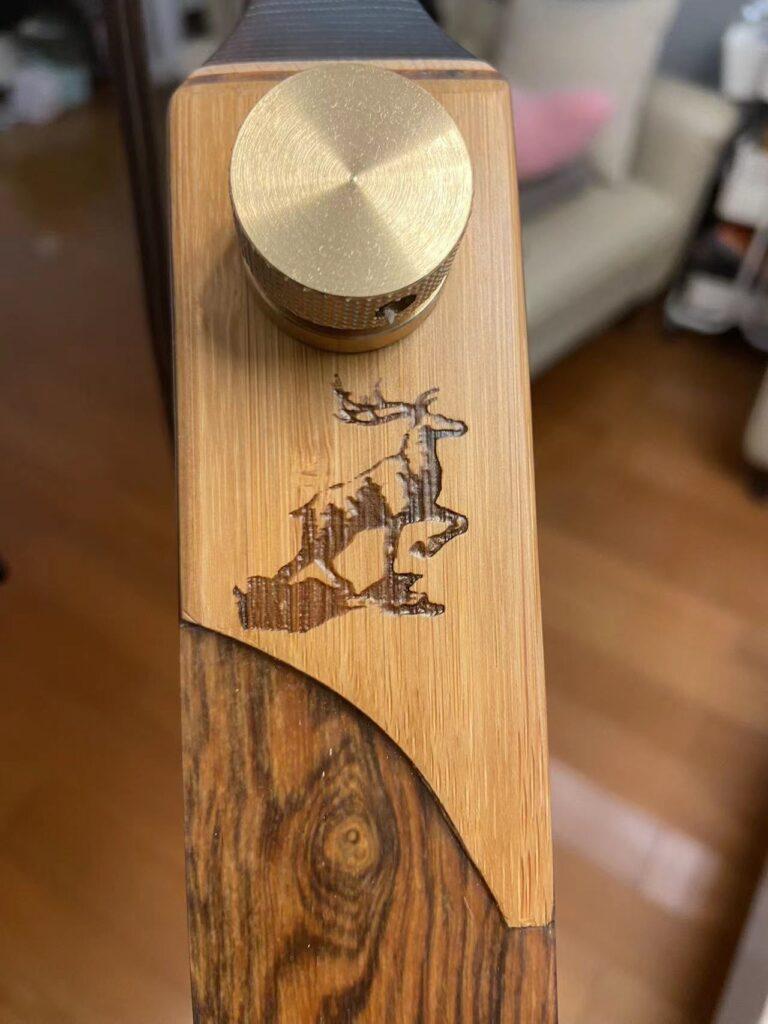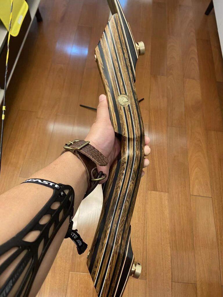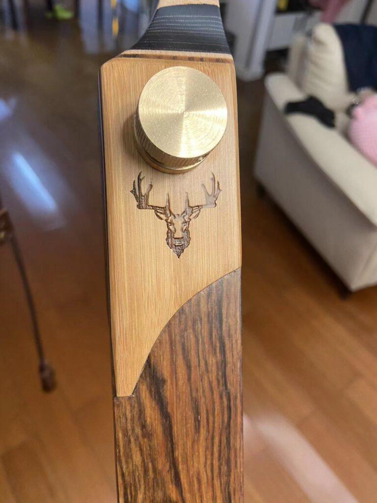 两把弓出掉后,就联系了巴尔老哥,预定了这把黑麋鹿,黄金檀,超经典的一个版本,个人觉得比科技木好太多太多,就是不知道哪位土豪订过黑白乌木版的,不知道好不好看,那木头价太高,土豪专用。巴尔说预计要1个月到1个半月才能做好,我说行,不赶工期,反正我还有一把竞技反曲。原本预计十一前能拿到就很不错了,结果十月中旬就搞好了,看来最近工期排的不满啊哈哈。