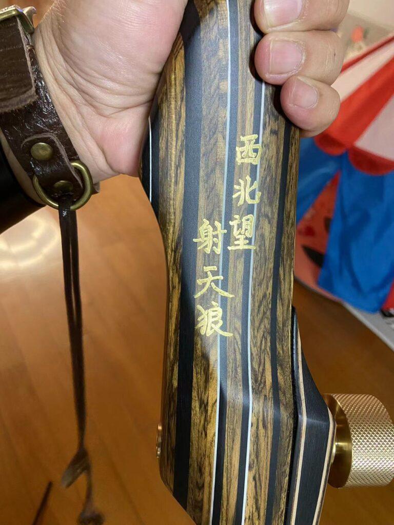 感觉少一些特色,就提上一首诗吧,感觉这样更加个性化,字丑也没关系,只要自己写的就是独一无二的,哈哈哈。而且油漆笔写了,可以用蜡油擦掉,强烈推荐给会画画的小伙伴们,打造自己独特的弓。