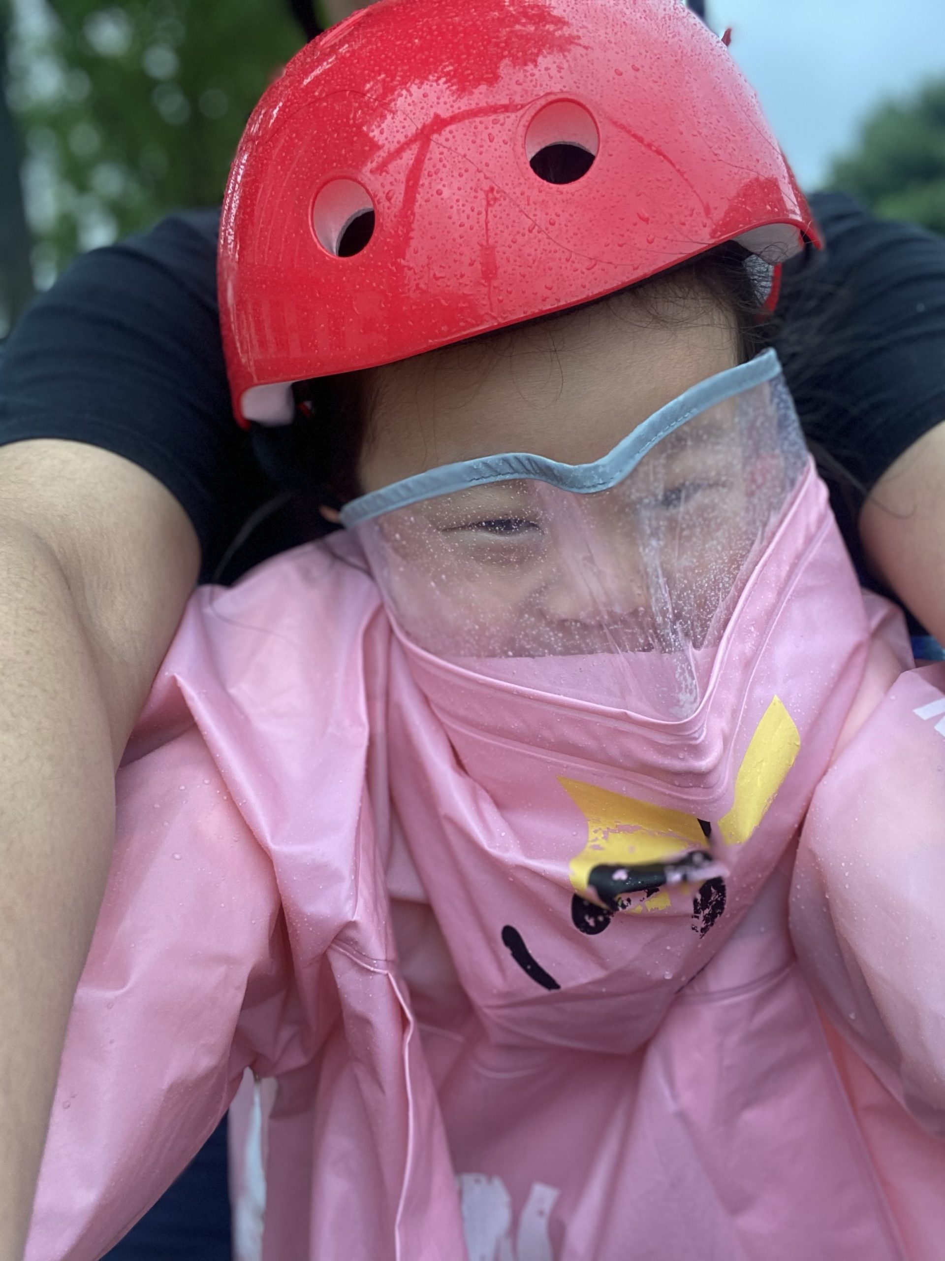 鸡飞狗跳,吃好早饭,送妞妞上幼儿园,看了看时间比平时晚了点,觉得还是开电动车吧,反正也不下雨,绿色出行省心不堵车,开出去没多久,天空没有巨响,雨却下下来了,还好不大,像清明的雨,柔和但又细密,赶紧给女儿套上小雨披,我自己只能冒雨前行了。