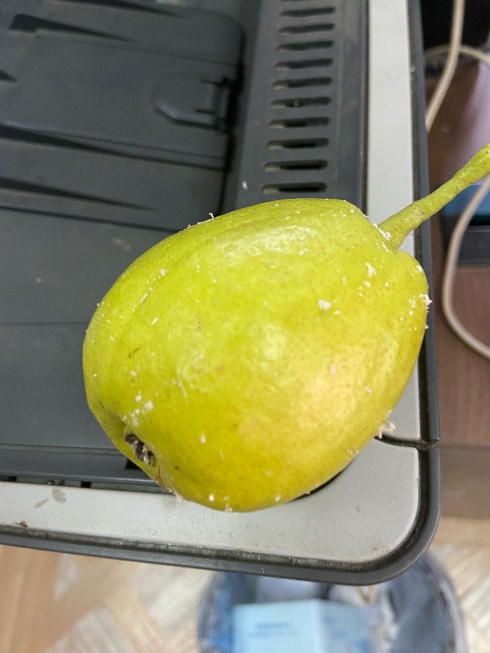 回到办公室,看到村里的小伙子正拿把剪刀蹭梨子??我说你把剪刀洗一洗再削皮啊,他说不是削皮,是刮蜡。emmm,然后给我看了下成果,然后我默默决定以后吃水果必须吐水果皮。。。