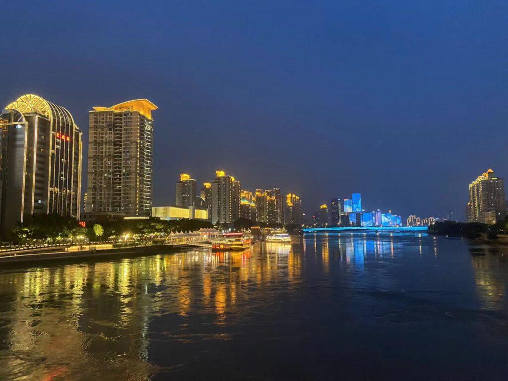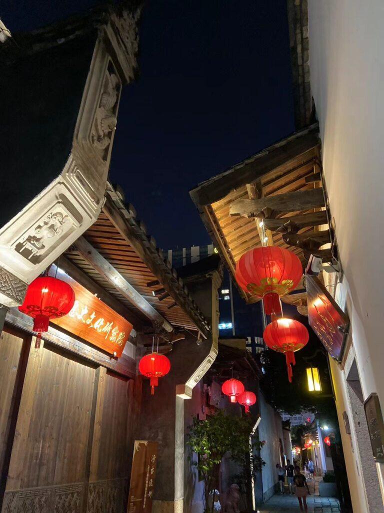 逛完博物馆回到酒店,入住的地方就在三坊七街隔壁,这是福州游客必到的景点。三坊七街是一群古建筑群,是国内现存规模较大、保护较为完整的历史文化街区,远处的高楼大厦和近处古色古香的楼宇相互辉映,遗憾的是游客太多了,缺少了那么一点古韵。苏州也有古建筑群,比如平江路,但不如三坊七巷规模宏大,又比如桃花坞,面积虽大但缺少修缮,破破烂烂的不如福州的坊巷好看。福州的母亲河闽江两侧,也是一片繁华景象,夜间的福州商业区灯红酒绿,灯光下人流涌动,毕竟是省会城市活力四射。
