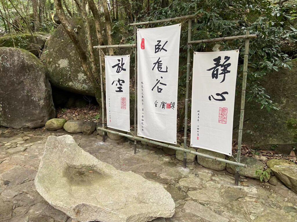 头一天玩的挺晚才回酒店,第二天稍稍休整下就去了卧龙谷。金庸老爷子亲笔题名的卧龙谷,很有一股子武侠风,一路沿着山道向上,时而出现一条瀑布,时而发现一潭清水,两个小朋友玩的不亦乐乎,恨不得脱了鞋子下水去嬉戏一番,这种山水美景在苏州是看不到的,也算是给他们开了眼。