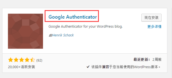 2、用管理账号,进入wp后台,查找并安装插件:google-authenticator ;