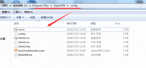 5、openVPN软件安装完毕后,将 key files解压,并将所有文件拷贝放到软件的“config”文件夹内:
