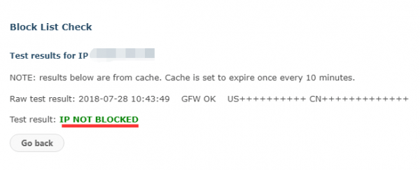 4、如果没问题,则会显示“IP NOT BLOCKED”,说明没有问题:
