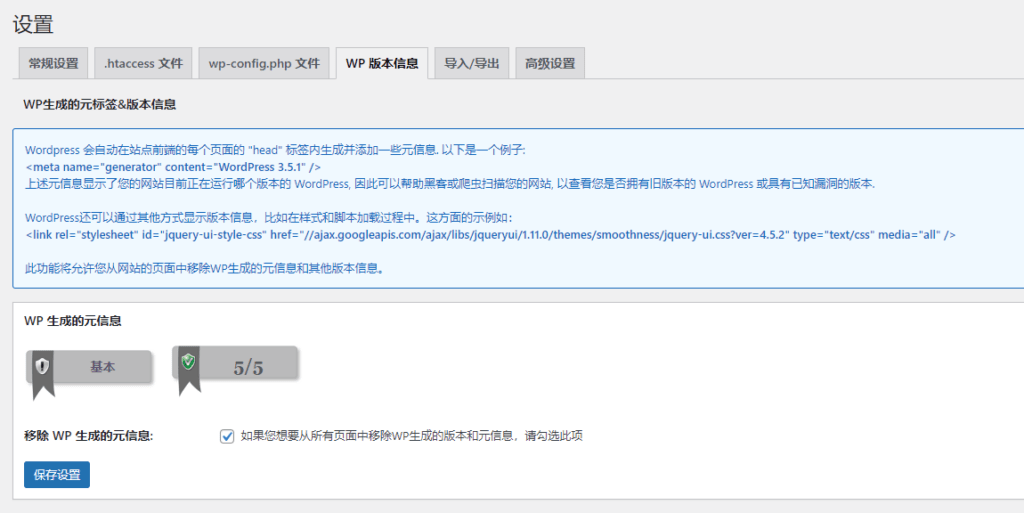 1、设置:移除WP版本信息,目的是让扫描器不能发现网站系统是WP构建的,防止被攻击。