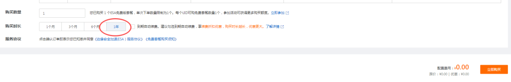 选择“免费版”!!一定是“免费版”哈,然后拉到页面最底部,选择“1年“,最后点立刻购买。