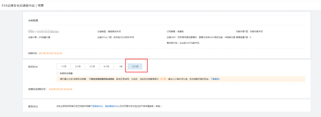 继续选择“12个月”0元续费,进入付款页面,0元付款,就可以再延长1年使用时间,直到2050年
